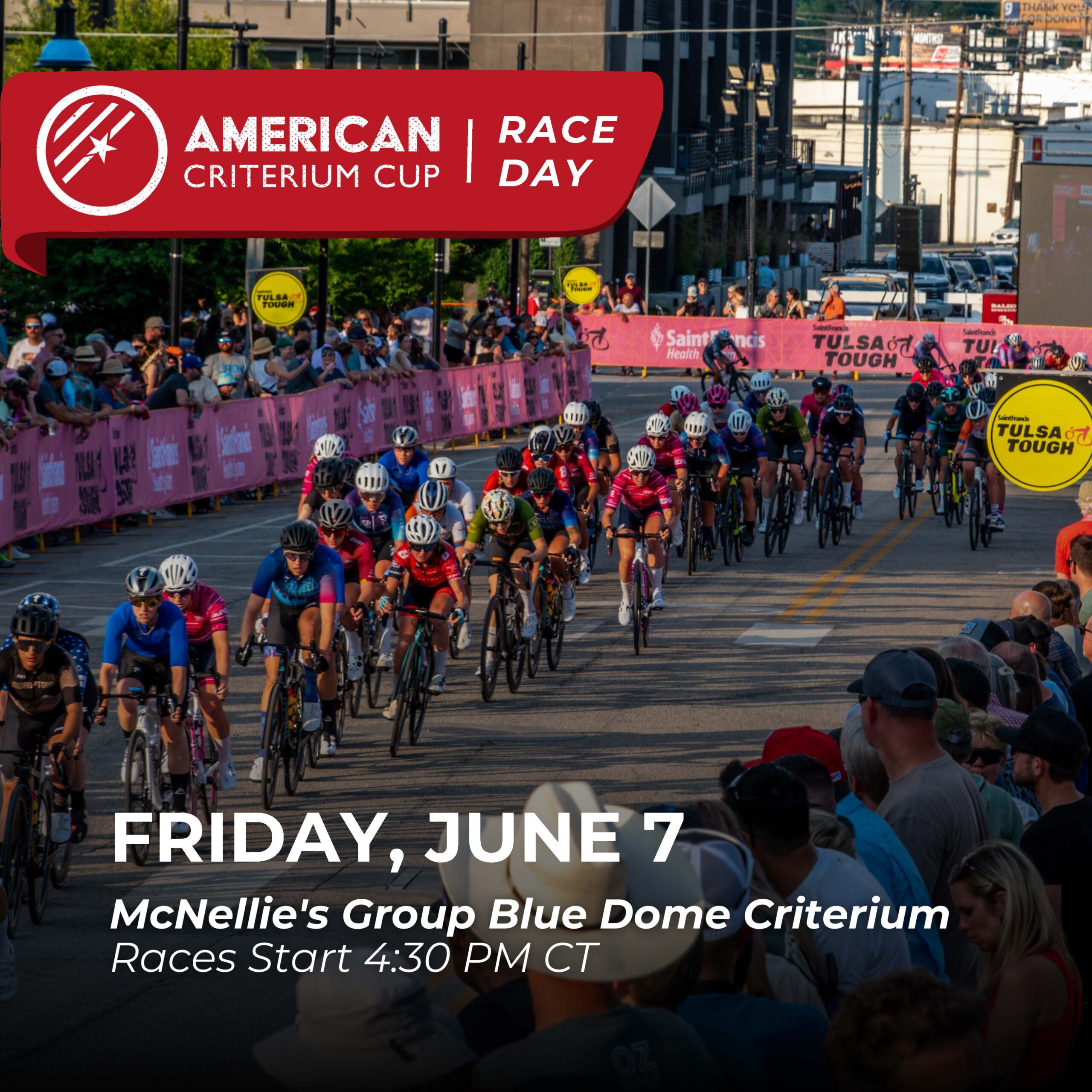 The 2024 American Criterium Cup kicks off at the Saint Francis @tulsa_tough this weekend and we couldn’t be more excited! Don’t miss the Super Bowl of Bikes in Tulsa from Friday, June 7 through Sunday, June 9. 🚴♀️